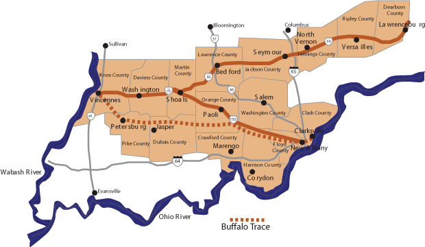 TOTAL MILEAGE, INDIANA’S HISTORIC PATHWAYS: 250.2 (50 miles of U.S. 50 and 150 overlap, Vincennes to Shoals; extant segments of the Buffalo Trace on primary and secondary roadways are included in the entries in Parts 1 and 2 above.)